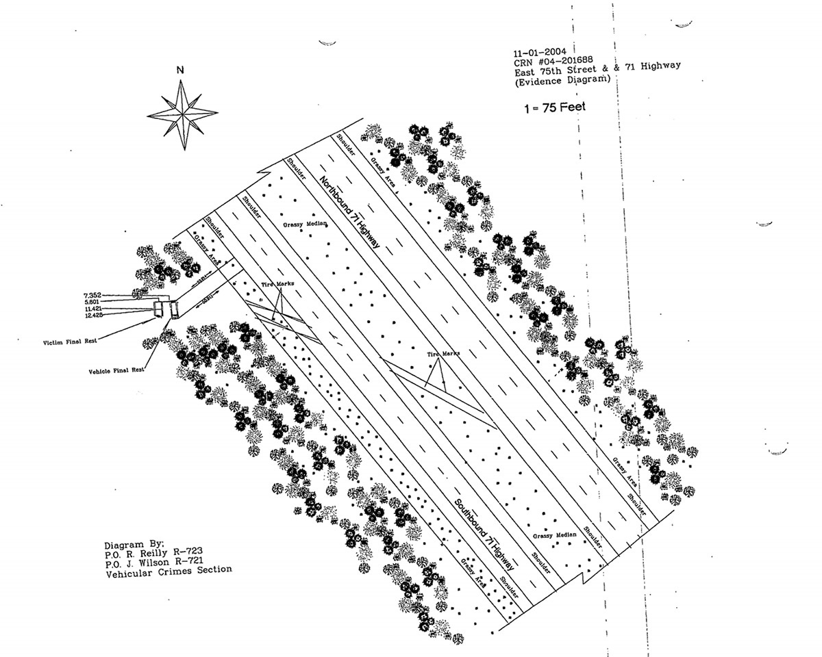 Kansas City Detective Everett Babcock arrived to the scene of a murder on the morning after Halloween in 2004. A totaled, white Dodge Legacy van was found on an embankment below Highway 71.