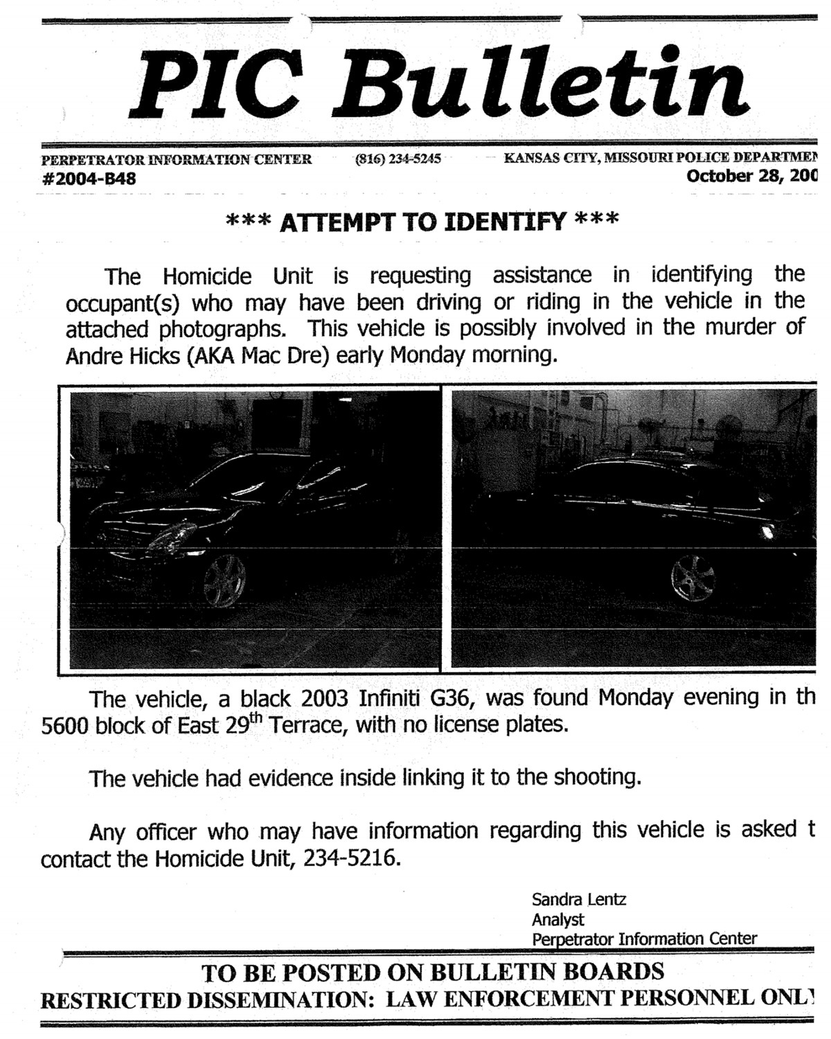 The first time Taylor laid eyes on the stolen black Infiniti was in July of 2004 — several months before the murder — according to his interview with Detective Babcock. It was being driven by a friend of his named Rick Hill. He was pretty sure Hill had stolen the car, but he didn’t want to pry. Hill would later ditch the Infiniti, telling Taylor that he sold it to a man named “Papoose.”